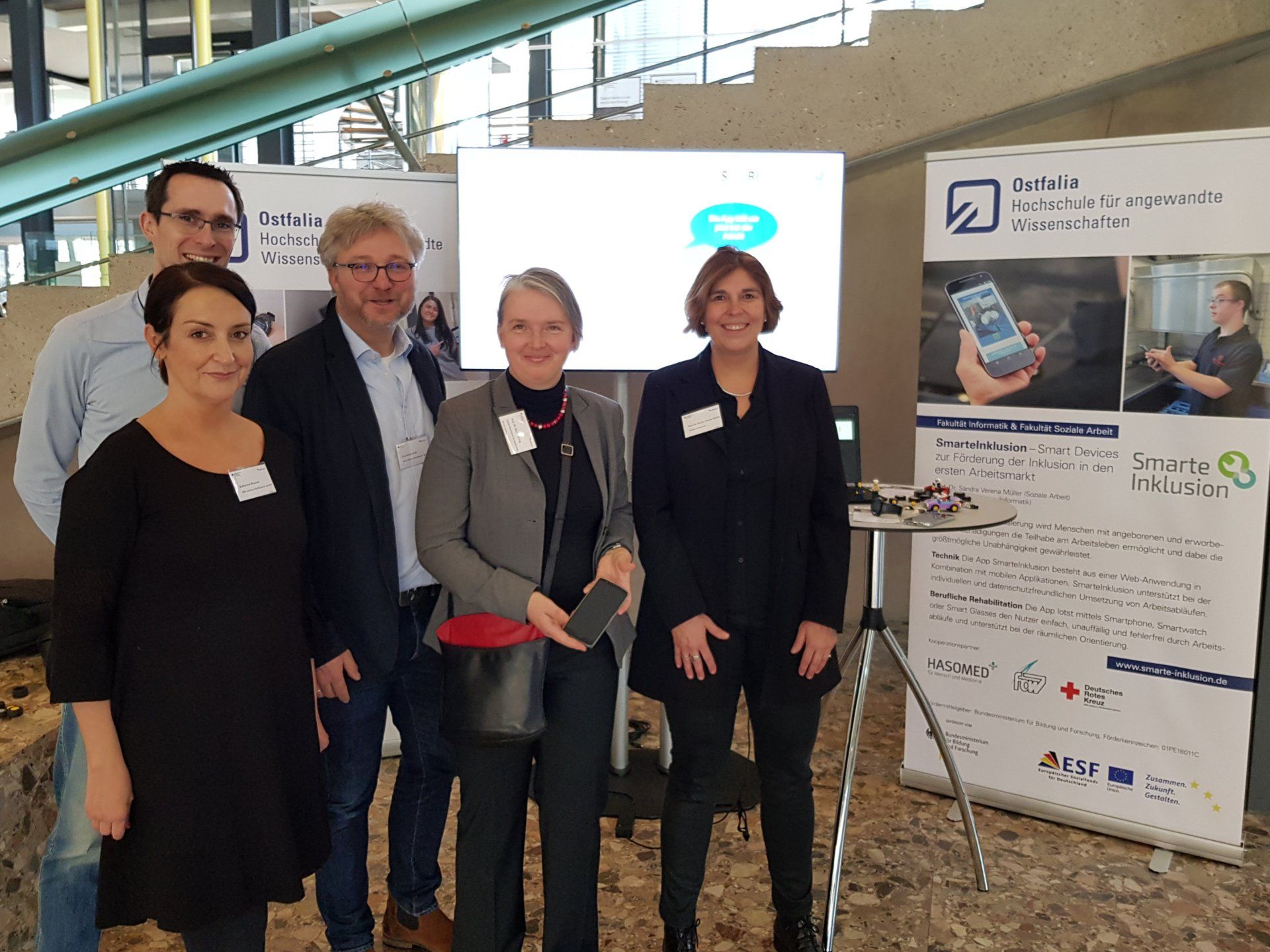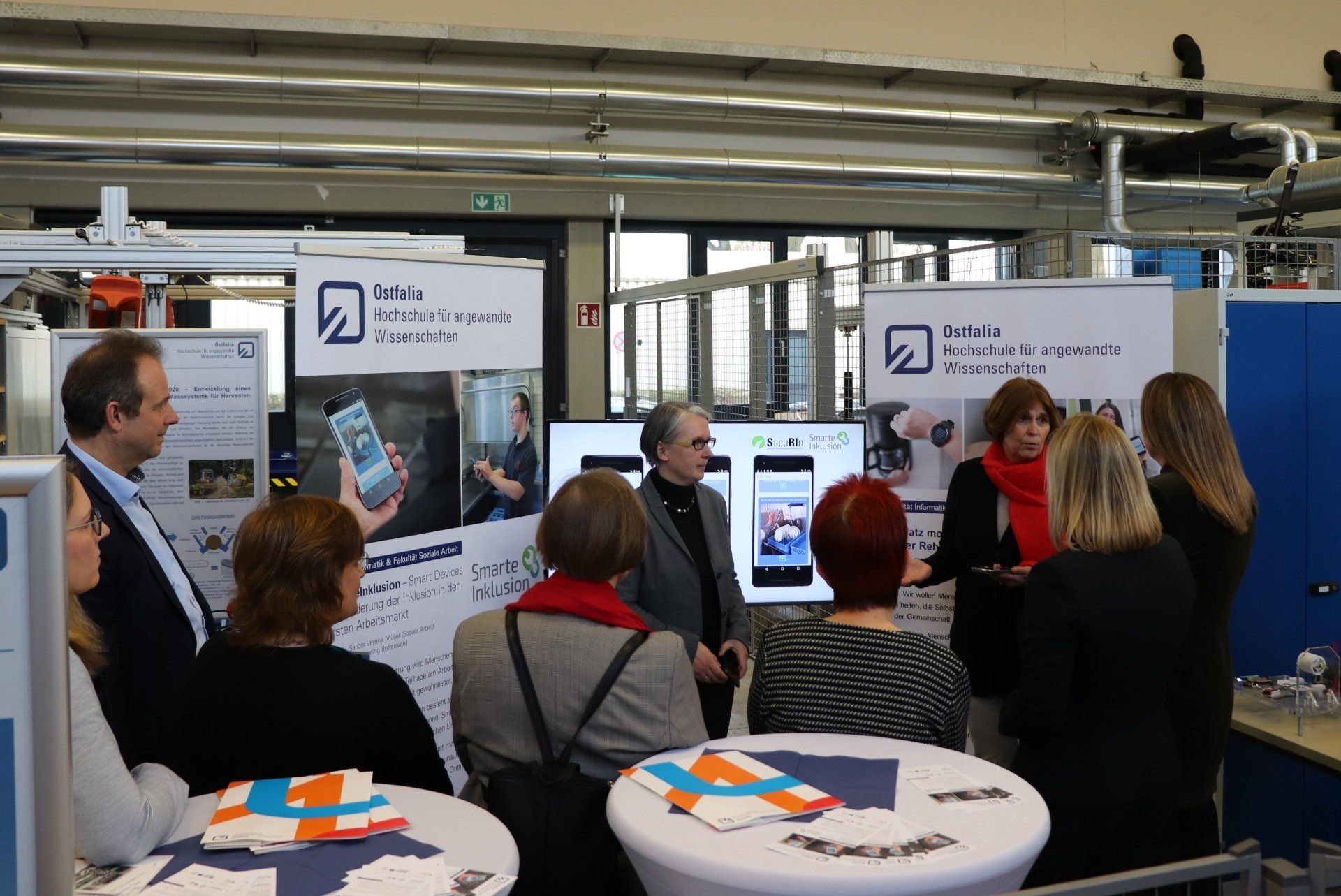 Digitalisierung kann die berufliche Teilhabe von Menschen mit Beeinträchtigungen fördern. So lautet die Kernaussage der ganztägigen Veranstaltung an der Ostfalia-Hochschule am Exer in Wolfenbüttel. Der Frage, wie Smartphones, Tablets und andere Devices bei der Inklusion in den ersten Arbeitsmarkt helfen, gehen Partner aus Forschung und Praxis inzwischen seit drei Jahren nach. Dazu gehören: die Fakultäten Informatik (Prof. Dr. Ina Schiering) und Soziale Arbeit (Prof. Dr. Sandra Verena Müller) der Ostfalia, die DRK-inkluzivo Wolfenbüttel gGmbh, die Fortbildungsakademie der Wirtschaft gGmbH (Monika Versmann und Björn Hagen) und die Hasomed GmbH (Jörg Appenrodt).
